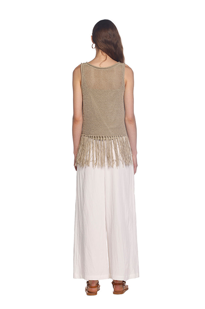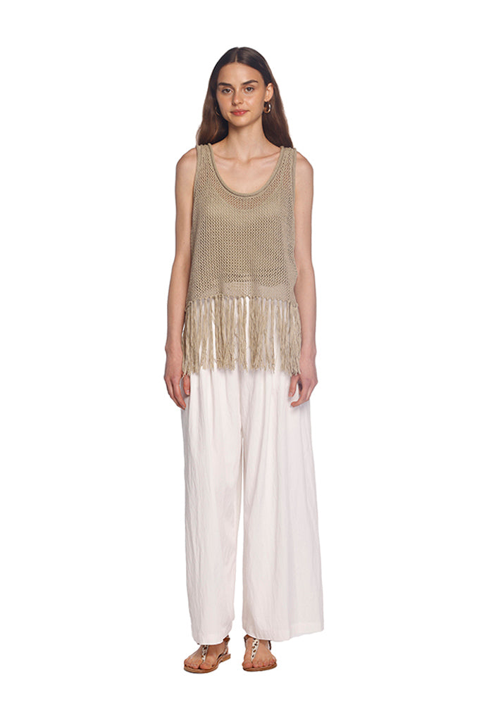 Khaki Knit Fringe Top